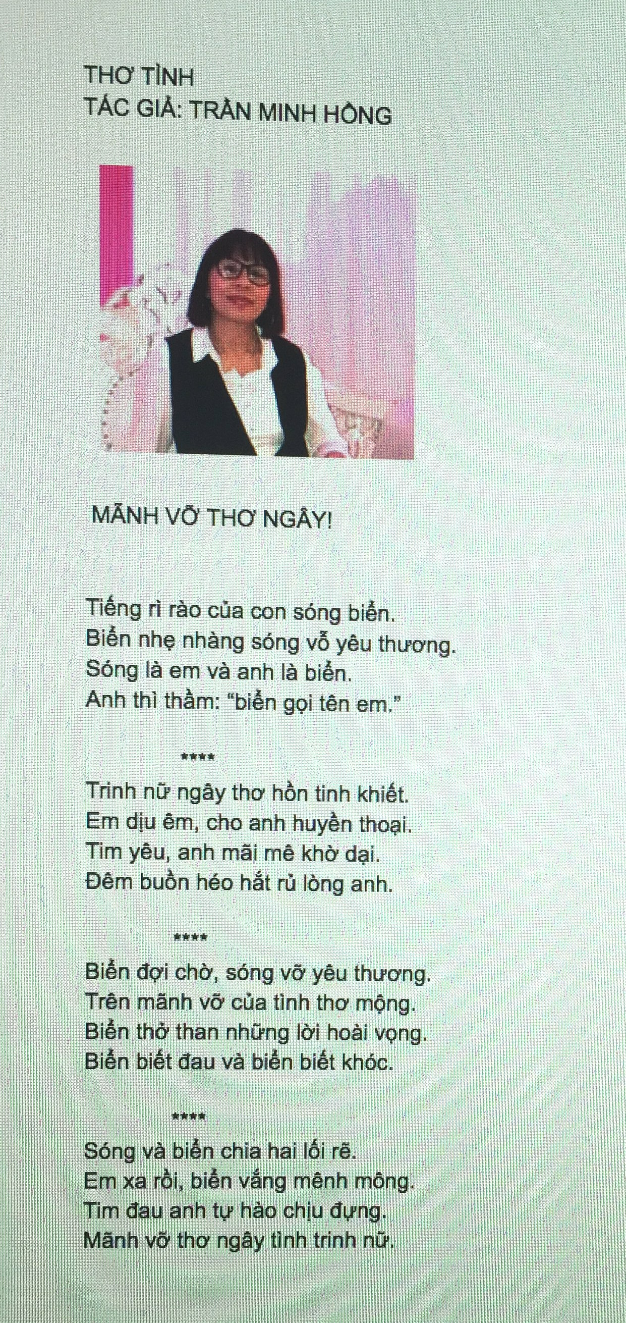 Trên mãnh vỡ của tình thơ mộng.